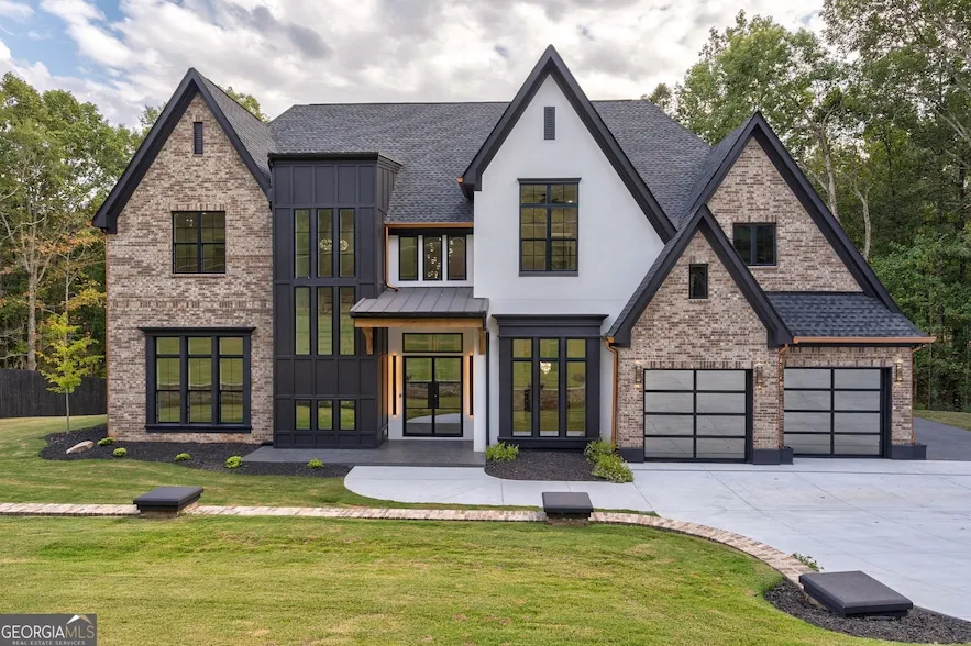 MOTIVATED SELLER! BRING OFFERS! From the moment you arrive at this gated estate, every detail of this custom built smart home speaks to refined luxury and modern innovation. Enter through double iron glass doors into a breathtaking two story foyer crowned with a crystal bulb chandelier. Seamless white oak hardwood floors throughout the home set the stage for timeless elegance. A formal dining room impresses with intricate ceiling detail, a designer chandelier, and a wall niche perfect for displaying your favorite art piece. The heart of the home is the expansive living room, complete with a detailed coffered ceiling, recessed speaker lighting, and floating shelves framing a Venetian plaster gas log fireplace. The gourmet kitchen is a showstopper, featuring quartz countertops, a breakfast-bar island with built in power, under counter storage & a microwave drawer, a JennAir WiFi-enabled double oven that has a gas range with a built in griddle, a wall mounted pot filler, hidden panel appliances, and a perfect spot for a coffee bar. A butler's pantry with a beverage chiller leads to a walk in pantry with extensive built in storage. Soft close cabinetry, under cabinet lighting, wine shelving, and a striking backsplash elevate the kitchen even further. The main level flows through a hallway connecting the three-car garage with epoxy flooring and attic access, the spacious laundry room with a sink, built in shelving, & a storage closet, a private office overlooking the serene back porch & spring-fed creek, and a beautifully appointed half bath with direct access to the outdoor living area. The primary suite is tucked away on this level as well and is a sanctuary with soaring cathedral-style ceilings, custom wall trim, statement lighting, and picturesque windows that flood the room with natural light. Talk about a spa inspired bathroom! This ensuite bath dazzles with double vanities, a dedicated makeup vanity with touch-light mirror, a free standing soaking tub against a marble herringbone accent wall, a water closet with a motion activated toilet & a bidet with adjustable water temperature, and an oversized glass shower with rainfall & dual shower heads, built in seating, and a wall niche for storage. It doesn't stop there! The master closet is a dream come true, featuring motion sensor lighting, custom shoe shelving, jewelry drawers, pull-out organizers, extensive cabinetry, and a built in oversized mirror. An additional downstairs bedroom includes a walk-in closet with shelving and under stair storage. Right next to this room is a full bathroom with a double vanity and a glass walk-in shower. Along the stairs, a landing with floor to ceiling windows leads the way to two spacious bedrooms, each with custom walk-in closets. A full bath with tile flooring, and cabinet shelving for optimal linen and toiletry storage is shared between the rooms. A versatile loft area with built in speaker lighting provides the perfect second living space, while a private movie theater room with double doors, projector & surround sound wiring, floor lighting, and a dedicated electronic closet creates a true cinematic experience. The outdoor living is equally impressive, with a slate floor covered patio featuring wood-lined tongue & groove ceilings, a brick fireplace with cedar hearth, and a built-in grilling station complete with a sink, refrigerator, and storage. Imagine watching your favorite sports team out here! Every detail of this home has been carefully curated, from custom chandeliers, crown molding, wall and floor trim, to black and gold fixtures throughout. Modern conveniences abound with dimmable lighting, speaker-integrated fixtures, WiFi thermostats, and an advanced smart home system controlling appliances, lighting, HVAC, irrigation system, security, and more! The door locks are fingerprint, facial recognition, and coded entry. This property is the pinnacle of luxury, advanced technology, and livability. Make this your private retreat NOW!
