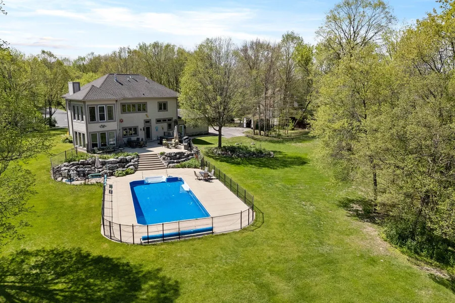 Experience the perfect blend of luxury and serenity in this exquisite custom-built home. Step inside to discover a meticulously designed living space featuring 5 bedrooms, 3 bathrooms, and a 4-car garage. The grand entryway showcases a striking spiral staircase, while an abundance of windows fills the interior with natural light. The open floor plan seamlessly connects the living room, dining area, and kitchen, creating an ideal space for entertainment. The chef-inspired kitchen layout offers a spacious island and generous storage, perfect for culinary enthusiasts. Retreat to the master suite, designed for comfort and relaxation. Venture outside to discover the backyard oasis, where a large patio and inground swimming pool await, adding a touch of tranquility to to your daily life.