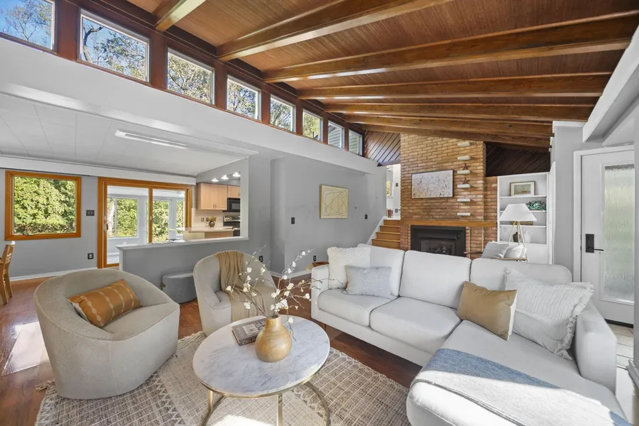 ***Lifestyle Opportunity! Built in 1949, this proto-mid-century modern retreat features vaulted cielings with wooden beams, clerestory windows and a brick fireplace anchoring the heart of the home. Sunlight pours in from multiple angles and walls of windows creating spaces that are filled with life. Outdoor living has been enhanced here under the current ownership, with expanded treetop deck and enlarged patio at the rear to enjoy the 1.3 acress all your own. The three season room is pictured with a lounging bed because the connection to nature in the space is quite peaceful... a feeling you do not find in a traditional neighborhood. Though the property abuts Dublin Road, the sounds of nature are audible and what provides a grounded feeling of home. Interior spaces are insulated by the thoughtful and flexible design layout. One TWO car attached garage flanks the Western edge of the home ...