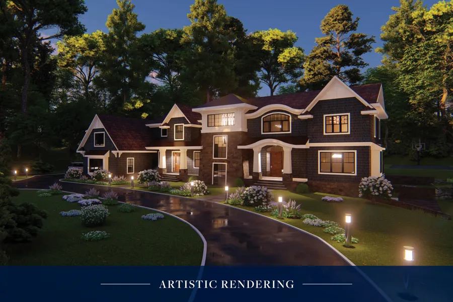 New Shingle & Stone home prominently sited behind mature specimen trees in the heart of coveted Weston Estates. Set back from the street, the property is approached by a circular cobblestone-lined driveway & has ample room for a pool & a sports court. The home comprises 11k sq ft, with an open floor plan on three levels, each filled with natural light. Chefs kitchen adjoins a large family room with a 20 ft cathedral ceiling & wood-burning FP. LR features a see-through gas FP & opens to an expansive patio. The stone turret on the front faade houses a dramatic, open, wide staircase that seamlessly connects all living levels. Dining room, library & guest suite complete the first floor. Master suite with a gas fireplace & spa bath plus three additional bedrooms are on the second floor. Lower level features 10 foot ceilings, an expansive walk-out playroom, an au-pair suite with kitchenette & ...