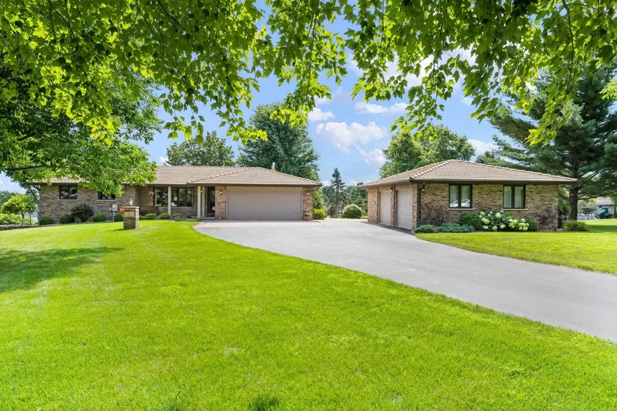 1.4 acre parklike backyard close to hwy, shopping and West De Pere Schools. Impeccably maintained brick ranch home has 4 bedrooms and 3 full baths. 2+ stall attached garage and additional detached 2.5+ stall garage offers plenty of room for all your toys. Hardwood floors throughout the first floor, updated kitchen cabinets and granite counters. Hearth area off of the kitchen has gas fireplace and access to the beautiful backyard. Primary bedroom has hardwood floors and an oversize walk in closet. Main bath features an updated tile walk in shower. Second bedroom and another full bath round out the first floor. Lower level has daylight windows two bedrooms, a full bathroom and family room. Clay shingled roof on house and garage. Backyard oasis has mature trees, fire pit and a playhouse.
