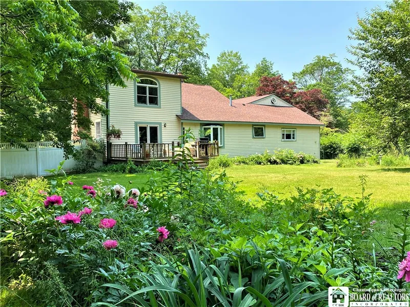 A hidden gem…. this lovely home is tucked away off the main road, a stone’s throw from picturesque Chautauqua Creek (excellent fishing!), and a pleasant ½ mile stroll to Westfield’s famous library, farmer’s market, shops, art galleries & restaurants. This is a very large and private lot for the village, about 1½ acre, with potential of 2 buildable lots along 2nd St. Perennial gardens, flowering shrubs, & stately old trees including a magnificent flowering cherry provide year round natural beauty. Sturdy fencing keeps the dogs safe & happy! The house is light-filled & charming, with a woodburning fireplace in the spacious living room, a formal dining room with cherry flooring, a cozy den with built-in bookshelves, a 1st floor bedroom & full bath, & a large easy-to-work-in kitchen with a great little baking center tucked in. There are 2 bedrooms and a full bath upstairs, and a fantastic 21 X 32 bonus room over the garage - a perfect bedroom, home office, yoga space, playroom, music room, or art studio. Delayed negotiations until 5 pm June 27.