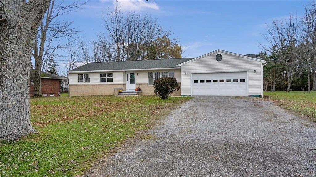 Spacious 3 Bedroom 1.5 Bath Ranch on 1.4 acres with 2 car attached garage. Entry featuring main floor laundry, half bath leading into your family room overlooking your updated large kitchen with island. Sliding doors leading to your back yard with two decks. Separate large and bright living room with hardwood floors under the carpet, as you will see in the 3 good sized bedrooms. Updated full bath with double vanity & tile shower. 10 block basement ready to be finished for additional living space. Storage not an issue with this home closets everywhere. Amazing location close to Transit for quick shipping, low cost Elma Taxes & Iroquois School District. No negotitations to take place till Thursday Dec. 2 @ 3pm.