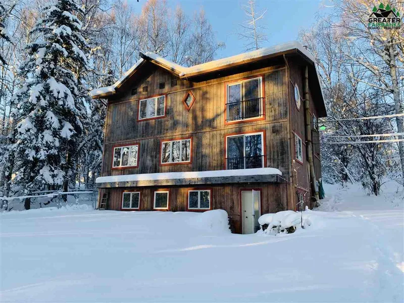 Check out this unique home located in the hills of Fairbanks on 1.4 acres ! There are a ton of windows adding natural sunlight throughout all three levels. The first two floors are a 2 bed 2 bath and a daylight basement includes a full service, kitchen, bedroom and bathroom. Fantastic open kitchen with corian countertops and a walk-in pantry. The third floor has an incredible master suite with walk-in closet, tile bathroom, washer and dryer, and a wood stove for those cold winter nights. There is a big octagonal window that would be perfect to catch the Aurora Borealis. There is a fenced side yard accessible off the main floor that would make letting dogs in and out easy. The daylight basement could be rented out as it has its own entrance and separate electric. This could be a great rental with newer kitchen appliances, washer and dryer and tile bathroom. With this house being in the hi...