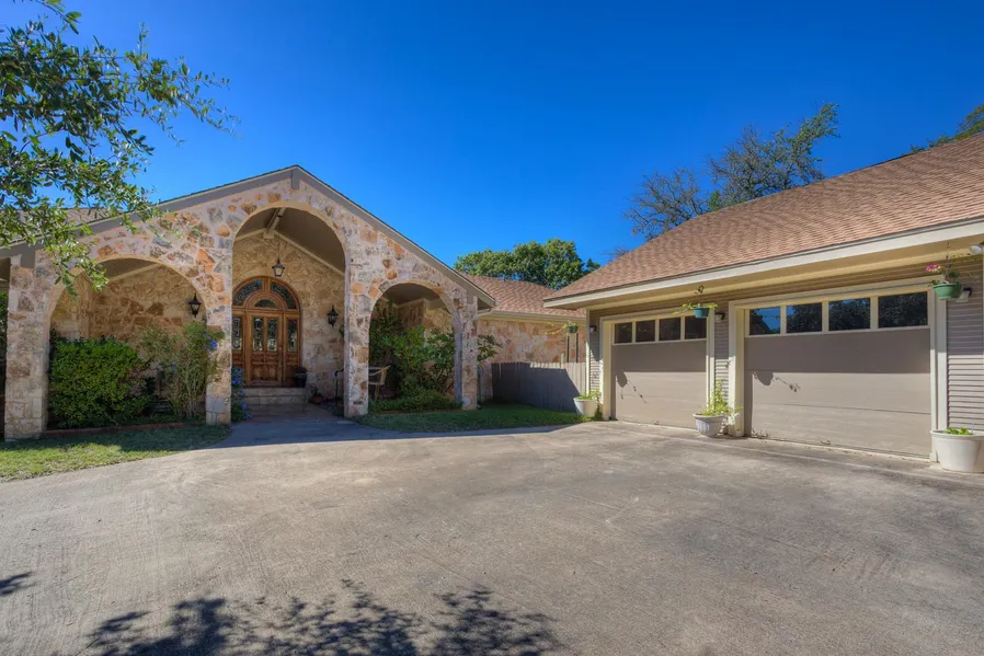 This stunning hill country home situated on 1.4 acres features PHENOMENAL VIEWS FROM EVERY ROOM! The home consists of over 3600 sq. ft. of living space to include three bedrooms, 2 full baths and 2 half baths, multiple living and dining areas, a beautiful rock fireplace, a sitting area adjoining the master bedroom, and high ceilings. The expansive covered decks on both levels are perfect for entertaining or just sitting outside enjoying the views. The Master Bath boasts a jetted tub as well as a large shower and huge walk-in closet. PLUS, large double paned windows, new wide plank engineered flooring, and 2/new air conditioning units. The detached 2 car garage also has an upstairs studio with a full bath. All of this without city taxes!