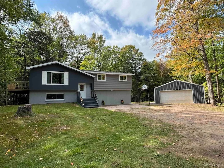 Home is back on market due to financing. This stunningly updated bi-level home, just 15 minutes from downtown Marquette, where modern comfort meets serene natural beauty. The open-concept layout bathes the interior in natural light, offering breathtaking views of the surrounding woods. Step onto the spacious deck to relax and soak in the tranquility of peaceful evenings. This home features 4 generously sized bedrooms, including a luxurious primary suite with an en suite bathroom and a charming decorative fireplace. Recent upgrades ensure a move-in-ready experience, including modern flooring, remodeled bathrooms, and a fully updated kitchen with new appliances and cabinets (2024). Additional improvements include brand-new windows (lifetime transferrable warranty) throughout (2025), a new furnace and water heater (2024), a freshly installed roof (2023), and a new well tank (2025). The fres...