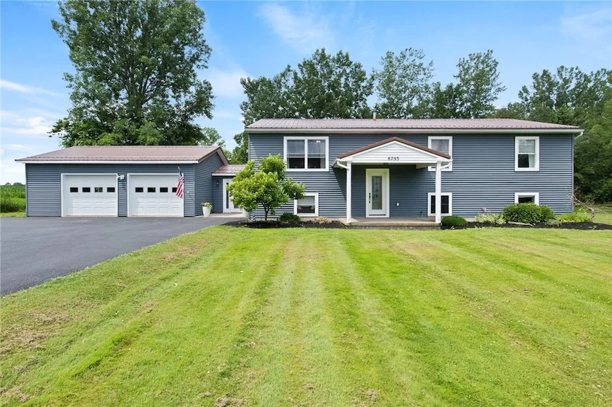 Sparkling Five Bedroom Raised Ranch Home On 1.4 Acres Set Off The Road*Completely Maintenance Free 1997 Built w/ Metal Roof*Boasting A Breezeway Entry Foyer With Built In Cubbies For Coats, Boots And Toys* Large Covered Front Porch*The Upper Level Has A Living Room Overlooking The Manicured Front Lawn*Open Eat-in Kitchen w/ Stainless Appliances*Laundry Area w/ Loads Of Storage*Three Large Bedrooms & Oversize Bathroom*The Lower Level Has Two More Large Bedrooms*A Family Room w/ Two Separate Areas, Wood Ceiling, Pellet Stove & Storage* Also On The Lower Level Is a Furnace/Utility Area & Unfinished Area That Would Be Great For a Media Room Or Future Shop/Craft Room*The Back Yard Has A Huge Deck & Shed*Delayed Negotiations Until Monday 7/21/2025 @ 6:00pm