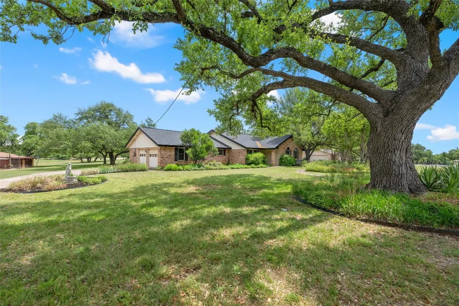 This beautifully maintained 3-bedroom, 2-bath custom home on 1.4 acres offers the perfect blend of country tranquility and urban convenience in Round Rock, Texas. Nestled among majestic live oak trees, the property provides a serene setting where you can enjoy morning coffee on the patio while observing local wildlife. Upon entering this beauty, notice the vaulted ceilings in the family room, and a large stone fireplace with built-in bookshelves create a welcoming atmosphere. A wall of windows allows natural light to flood the space.? Gourmet Kitchen: The updated kitchen boasts Quartz countertops, an Italian porcelain backsplash, a Bosch dishwasher, a GE wall oven, and a smoothtop cooktop. Additional features include pull-out shelves in lower cabinets, luxury vinyl plank flooring, and freshly painted cabinets with new hardware.? Primary Suite Retreat: Located at the back of the home, the spacious primary bedroom offers a private sitting area with views of the backyard. The en-suite bath features his/hers vanities with granite countertops, updated faucets, lighting, a massive shower with a seat, and seamless glass doors.? Additional Amenities: Two generously sized guest bedrooms, a laundry room with space for a refrigerator, and an oversized side entry garage with ample storage. The property is meticulously landscaped and includes a full irrigation system, gutters, and a storage shed. Recent updates to the septic system ensure efficient operation. Exterior trim and shutters have been freshly painted, enhancing the home's curb appeal. Situated in a low-tax area with access to highly acclaimed Round Rock Independent School District, this home is conveniently close to hospitals, universities, major roads, shopping centers, and restaurants. The absence of an HOA provides added flexibility and freedom for homeowners.? Don't miss the opportunity to own this exceptional property that combines the charm of country living with the conveniences of city life.