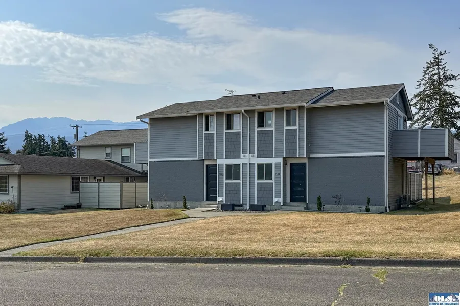 Twin Peaks East — Stylishly Remodeled Duplex with Income Potential, Furnished Interiors, and Mountain Views! Welcome to Twin Peaks East—a newly renovated duplex offering 1,000 sq ft per unit, each with 2 bedrooms and 1.5 baths. Located within the Port Angeles city limits on a quiet west side street, this stylish property sits on an oversized lot and a half and is sold fully furnished in both units. Whether you're seeking a home away from home or a flexible investment, Twin Peaks East delivers. Each unit is thoughtfully equipped for comfort and convenience. The full kitchen comes stocked with essentials including coffee, tea, creamer, salt, pepper, and cooking oil. Guests will find fresh towels and linens, along with shampoo, conditioner, and body wash provided for their stay. Entertainment is covered with a Smart TV, and outdoor cooking is easy thanks to the propane BBQ. Each unit also features an on-site washer and dryer, all major appliances, and a private carport with built-in storage. Additional parking is available via alley access, ensuring ease for both residents and guests. Perfect opportunity to enjoy one side as your primary residence or vacation retreat, while leasing the other side on a flexible month-to-month basis. Enjoy southern exposure from the fenced patio with Olympic Mountain views. Inside, you'll find durable laminate flooring, stylish light fixtures, and a ductless heat pump for efficient heating and cooling. The main level features a welcoming foyer with filtered light, a coat closet, and a spacious living room with stone accent wall and French doors that open to the patio. The designer kitchen includes quartz countertops, grey cabinetry, black appliances, and a stone backsplash. A dining area, laundry room with shelving, and a half bath with tile flooring, quartz counters, and a lighted mirror complete the main floor. Upstairs, a custom metal banister showcases Olympic Peninsula scenery. The hallway’s stone accent wall leads to two bedrooms and a full bath with subway tile surround, accent tiles, rain shower head from the ceiling, handheld wand, and built-in product cubby. The primary bedroom opens to a composite deck with sweeping views of the Strait of Juan de Fuca and the Olympic Mountains. Bedroom two features its own stone accent wall. From this central location, you're perfectly positioned to explore the best of the Olympic Peninsula—just minutes from downtown Port Angeles, the Olympic Discovery Trail, Salt Creek, Hurricane Ridge, Lake Crescent, and the countless natural wonders of Olympic National Park. A rare opportunity to own a fully furnished duplex with stylish upgrades, panoramic views, and unbeatable access to adventure.