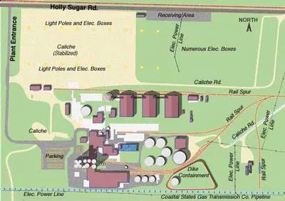 Former sugar processing plant. Improved with numerous storage tanks and silo elevators suitable for grain or pellet storage. 2.5 miles of BNSF rail. 13 Water Wells (can use as much water as can be pumped). Heavy electrical service. Natural gas supplied by Coastal States.