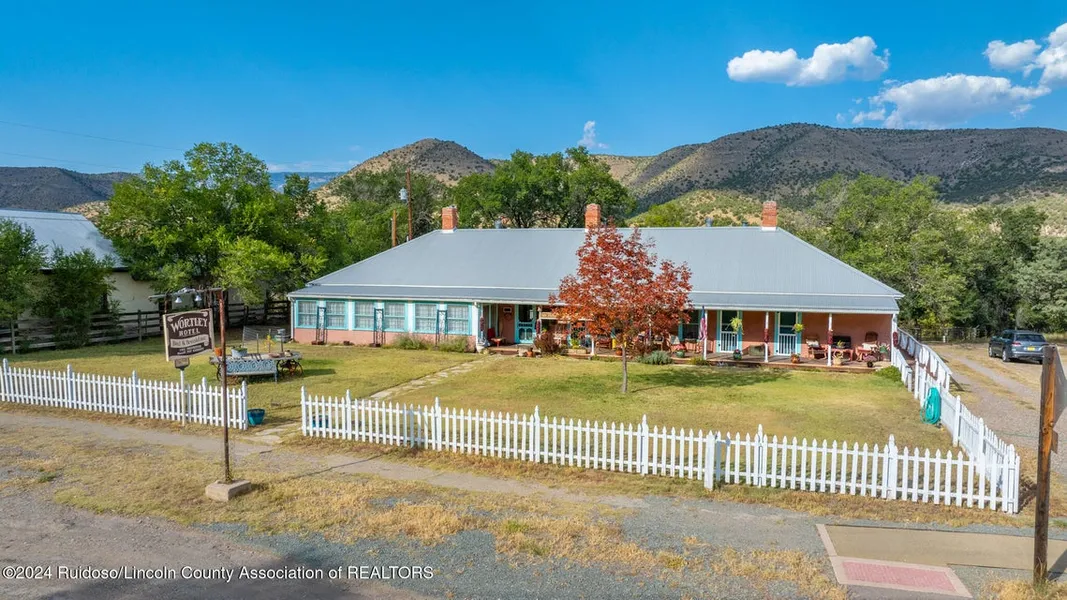 Own a piece of the Old West in Billy the Kid country! The vintage Wortley Hotel in historic Lincoln, New Mexico, is uniquely suited to accommodate a large family or welcome your special guests to visit and enjoy this distinctive property. Step back in time to the turn of the century when you enter the living room with its ornate bar and wood-burning fireplace, while soaking in warm Western charm. Its 7 bedrooms and 9 bathrooms, with all modern amenities, could be a great residence where all will want to gather and relax. The inviting sunroom is just off of the ''Sitting Porch'' and the office is immediately inside the front door. The current owners' suite features a sitting room, bedroom, 1 & 1/2 baths and a private porch.