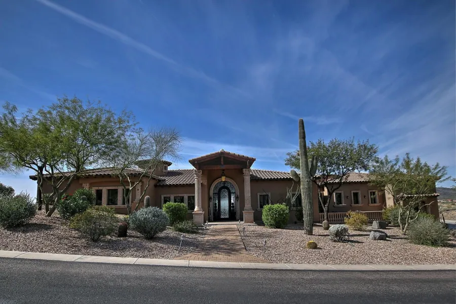 Crown jewel of the north valley! Elevated 1.4 acre mountainside lot with incredible views! Perfect location to I-17. Just minutes to the new tsmc semi-conductor plant currently under construction. This 7bed, 5.5 bath estate is a split level with a walkout to pool. 5 bed, 4 bath on main level includes owner's suite, jack and jill bedrooms and an additional en-suite. Separate walkout level with 2 bed, 2 bath (1 bath is en-suite) with bar/kitchen area is perfect for extended family or welcomed guests. Dream eat-in kitchen features beautiful cabinetry, butler's pantry, separate sub-zero fridge and freezer, dual ovens, large island with vegetable sink, pot filler over gas range, large bar top, granite counters & walk in pantry. Massive electric collapsing sliding doors open to breathtaking views and brings the patio area in as an extension of the family room. Features list - giant custom iron front door, extensive use of Cantera stone, wood-beamed ceilings, large walk-in wine cellar with iron door, coffered ceilings, custom lighting, stone floors, solid wood doors, additional washer/dryer area in master closet, crank-out windows, gigantic 6+car garage with high ceilings, tons of built in cabinets and sink. The garage is insulated with vent work in place to add a/c, 2 dedicated plugs for electric car charging. Water softener, misting system, set up for central vac, nest thermostats, 2 new hot water tanks, camera system, speakers throughout the house, multiple jacuzzi tubs, both pool and spa heating, built-in bbq at the pool, sunk-in pool area cabana with swim-up bar, 2 majestic Cantera stone fireplaces and a lot more! No cost was spared during the construction of this home! It's spectacular and priced to sell! Call listing agent for details.