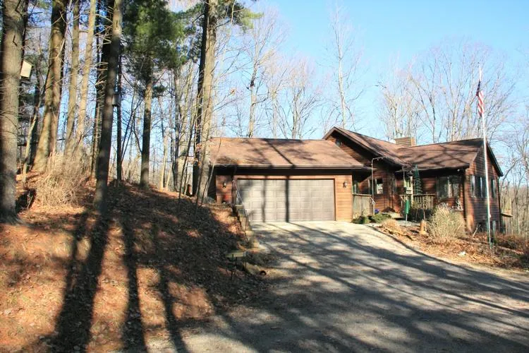 *SOLD OCTOBER 2011* NEW reduced PRICE...A+ home priced at less than $70 per square foot! Including a kitchen with a surprise inside! A unique, commanding & full custom perch just above the main security gate & docks in the resort community of Hide-A-Way Hills, near the famous Hocking Hills. Architect-designed (plans available)..space to spare for family & friends, w/outdoor deck plus patio, along w/multi-season lower level porch and spacious main level dining porch. Spectacular central cathedral ceiling and floor-to-ceiling fireplace on the main living level, plus a second fireplace in the lower level great room. Kitchen with convenient pass-through window, first-floor laundry/utility room, inviting master suite and den. The walk-out lower level also features its own fully-equipped kitchen w/eat-in area, plus recreational/game room space, 2 bedrooms & full bath, work room and more. Come...