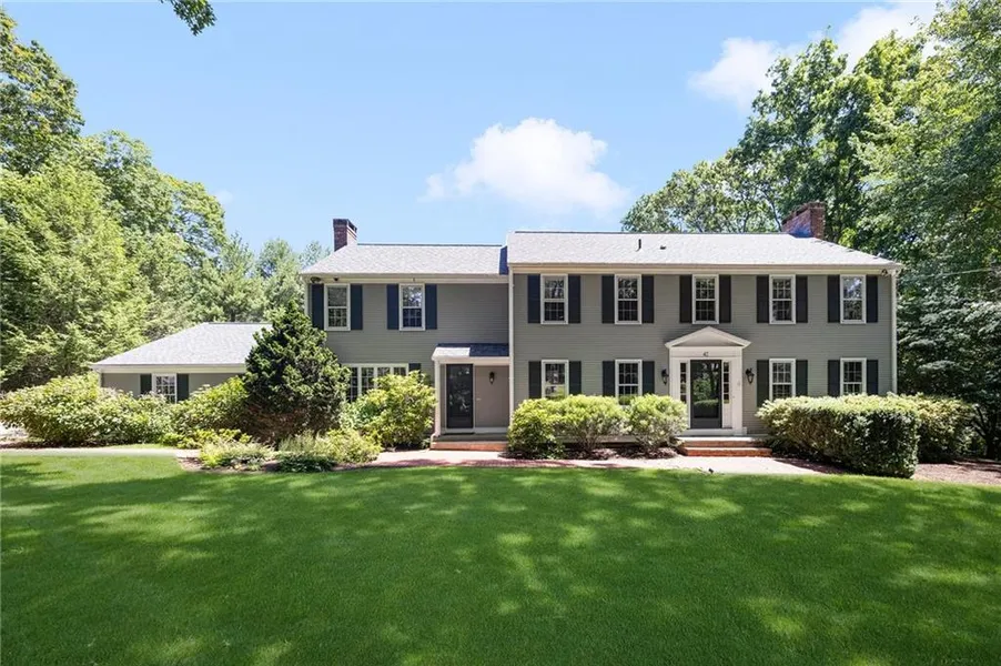 Experience Resort-style living in East Greenwich with a clay tennis court, in-ground pool, and pool house! This 4 bedroom home with over 4200 square feet of living space is nestled in the desirable Queens Grant neighborhood. Inside the home, you will find oak hardwoods throughout with an abundance of natural light. The eat-in kitchen features inspiring counter space in an attractive layout with granite countertops and stainless steel appliances. Off of the kitchen, there is a large family room that flows into a sunroom. Also on this level is a spacious formal dining room, beautiful living room and bathroom, and washer and dryer. Head upstairs to the second level and enter the primary suite with a walk-in closet, full bathroom, and home office. Three more large bedrooms and closets, in addition to 2 more full bathrooms complete this floor. The lower level has a huge recreation room and plenty of storage. The backyard has gorgeous landscaping, a pool house, an in-ground pool, and a clay tennis court. This home is within walking distance of the high school and close to Main Street.