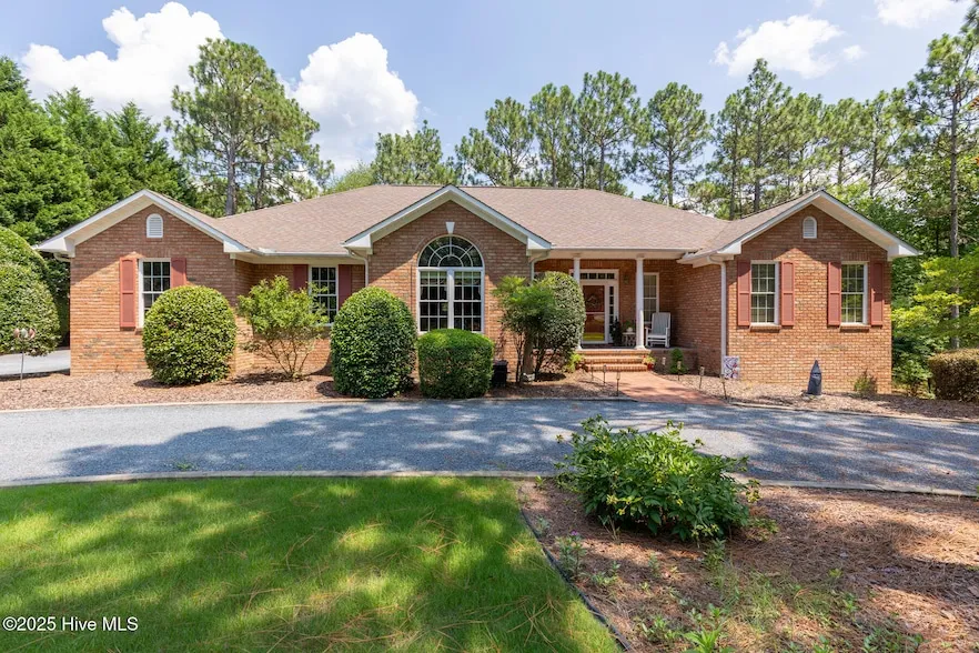 Welcome to this charming, well-maintained brick home situated on a double lot in the highly sought-after, gated community of Seven Lakes West, renowned for its scenic Lake Auman and array of wonderful amenities. Enjoy enhanced privacy with a well-kept front lawn, mature landscaping, and a backyard oasis surrounded by natural, wooded areas perfect for peaceful mornings and quiet evenings. Inside, you'll find elegant touches throughout, including hardwood floors in the main living areas, vaulted ceilings in the living room and formal dining room, and an abundance of natural light. The inviting living room features a gas log fireplace and large windows with sidelights and transom, opening onto a spacious back deck with tranquil views. The kitchen offers warm, light wood cabinetry, stainless steel appliances, and a breakfast nook. The Carolina room is bright with tile flooring, ceiling fan, ...