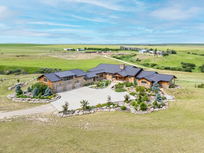 Diamond T Ranch is a 1,400+ acre property just 20 minutes from downtown Great Falls, MT. This one-of-a-kind ranch features an 8,346 SF custom home with Wolf kitchen appliances, a Sub-Zero fridge, a heated 3-car garage, luxury stonework from Italy, France, and Turkey, and a newly renovated 1,700 SF caretaker/guest home just a half mile from the main house.