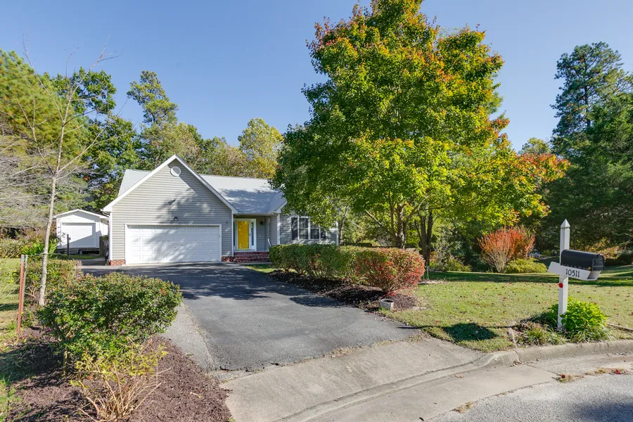 Nestled in at the end of this quiet cul-de-sac resides this wonderful move-in ready rancher on a 1.4 acre lot. This updated three bedroom home has it all. Roof was replaced in 2017, hot water heater in 2017, and HVAC 2016. It has newer carpet in all three the bedrooms, an open concept living room with vaulted ceilings, and a large kitchen that is perfect for entertaining. The spacious primary bedroom features a walk-in closet, en-suite bath with dual vanities, a soaking tub, and a stand alone shower. The backyard is what really brings this property together with its irrigated raised beds, two storage sheds, great deck/patio, and views of the pond with its resident ducks. This house also has a two car garage with plenty of storage and room for an RV with hookups on the outside of the garage. Proximity to the several commuter routes makes this property convenient to all the greater Richmon...