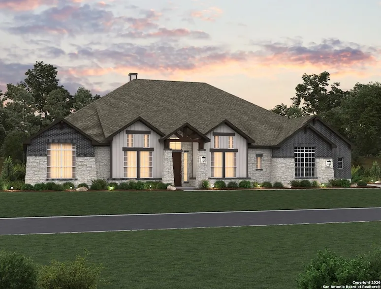 This one-story home includes an oversized 3-car garage, 4 bedrooms, and 4 bathrooms, making space for family, guests, and all the extras that make life run smoothly. The gourmet kitchen with gas cooking flows into a spacious family room, where a woodburning fireplace sets the tone for cozy evenings at home. An additional game room and separate study provide ample space for entertaining and family time. The primary suite has an oversized walk-in closet, separate vanities, a large shower, and a freestanding bathtub. Each secondary bedroom has its own bathroom and a walk-in closet. This home features design selections curated by our studio team. Finishes such as flooring, cabinetry, countertops, and details are intended to create a cohesive and welcoming space. Design selections are not guaranteed and may change as the home progresses. This home is in Waldsanger, in the scenic Texas Hill Co...