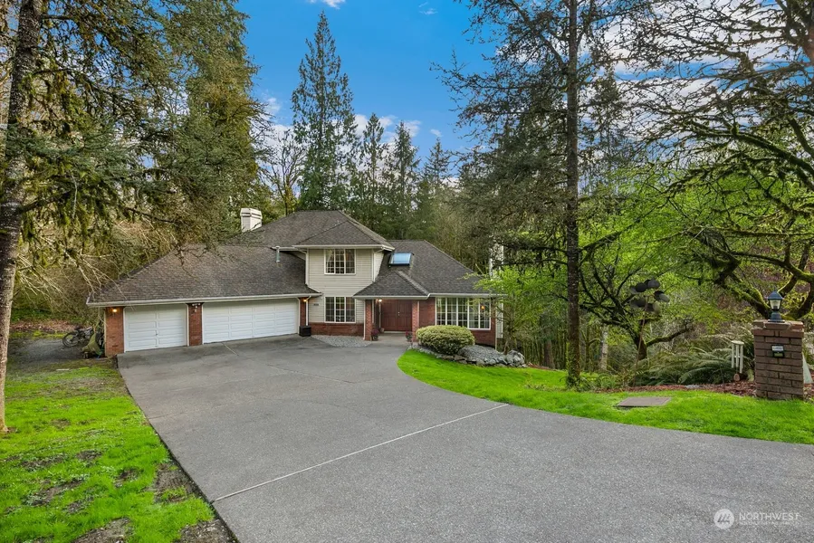 $80,000 price reduction! Spacious and private...Gorgeous remodeled kitchen w custom cabinets,induction cooktop & dbl ovens.Kitchen is bathed in natural light & has atrium breakfast nook. Adjoining family room w cozy fireplace is ideal for movie night w/screen & projector included. Main floor also has office, LR w gas FP & DR & hardwood floors throughout. Upper w/remodeled primary suite w/deck plus 2 add' bdrms & hall bath.You will LOVE fully finished basement w lodge feel, wood beams built-in book shelves,"secret room" hiding behind bookshelf,rock fireplace.Lower-level also includes add'l bdrm, and add'l finished rms,3/4 bthrm.All baths remodeled.3 Decks.You will appreciate the quiet street,cul-de-sac location & private 1.4 acre lot.