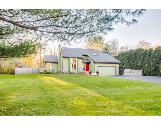 This contemporary style home is located within minutes to major highways and all conveniences, without sacrificing privacy. Tucked away in a cul de sac neighborhood on Merrimack River and sits on a private 1.4 acres lot surrounded by mature trees, it truly is an urban oasis. Set your foot inside, you'll be greeted by the bright, sun filled and airy living area featuring cathedral ceiling, skylights and bamboo flooring throughtout. Double french doors off the living room leads to a family/play room with a wood stove. Go through the kitchen with new stainless steel appliances and large island, you'll find a door that will lead you to a large wood deck perfect for entertaining and your own fenced in private backyard. Store all your heavy equipments inside the shed. First floor also boasts an en-suite master bedroom, laundry, a half bath and heated 2 car garage. On second floor, you'll find 2 bedrooms connected with a jack and jill bathroom and another generous size bedroom. Central AC.