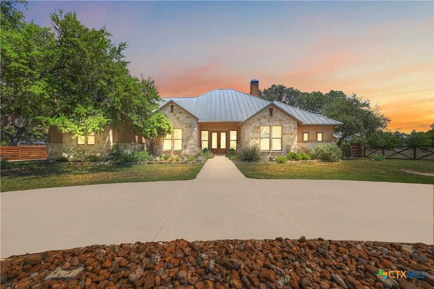 Enjoy CANYON LAKE ACCESS from your own backyard with this beautiful Hill Country Home sitting on a sprawling 1.44-acre lot in the sought-after neighborhood of Canyon Lake Island!! This 3-bedroom 3.5 bath home has everything you need to live your best lake life! Upon walking in you are greeted by a wall of windows letting in tons of natural light and framing impressive views of the Hill Country landscape in the distance. High ceilings, low maintenance stained concrete floors, custom alder cabinets and built ins, a wood burning fireplace and granite counters with a travertine backsplash are just a few of the quality finish outs. All bedrooms are downstairs along with a formal dining room, breakfast area, huge laundry room and a little office nook off the kitchen. Upstairs you will find a spacious 22x18 flex room with a full bath- the perfect space for a movie room, game room, or play area...