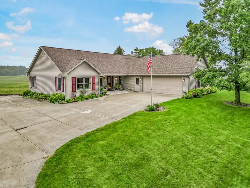 Perched up on a hill this custom built Ranch Home, one owner will not disappoint. Country setting on nearly an acre and half has views of the prairie with awesome sun rises and beautiful sunset skies. The home offers three bedrooms, three baths with an open custom kitchen, living room and dining area. A spacious main floor living plan includes a fieldstone wood burning fireplace for any type of gathering! An outdoor deck directly off the main living area to enjoy the views of the nature that surround you. The walkout basement offers a bedroom, bath and family room with endless possibilities of the unfinished area to complete to your liking. The oversized 2.5 garage has amazing space and the lower level offers double doors to park your mower or golf cart. Established perennials, herbs and raised bed garden. New roof, geothermal unit, hot water heater and few appliances in the last few yea...