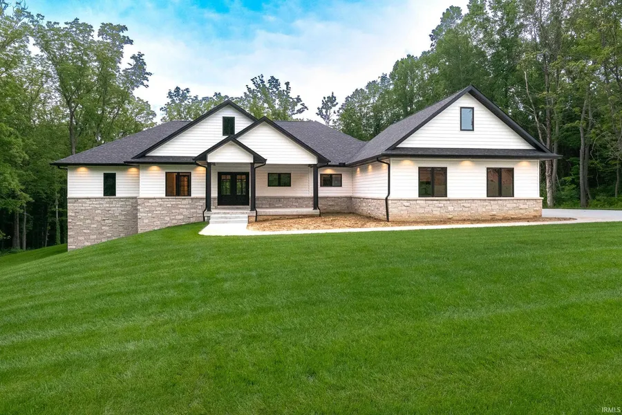 Welcome to a masterpiece of modern living nestled on 1.44 partially wooded acres . Designed with meticulous attention to detail, this home showcases the finest finishes and features throughout. Hosting 5 bedrooms, each with en suite bathroom access, 6 bathrooms plus a Den. The open kitchen is a dream, equipped with granite counters, custom cabinetry, wine refrigerator, backsplash, dual ovens and top-of-the-line THOR appliances. Sleek and durable oak hardwood flooring flanks the open living areas, exuding warmth and sophistication. Spacious primary en suite boasts radiant heat flooring and porcelain tile, adding a touch of opulence to your daily routines. Step outside to discover a composite rear deck with covered and uncovered areas, perfect for entertaining and embracing the beauty of nature in the privacy of your own backyard. Indoor and outdoor fireplaces create an ambiance that will captivate you and your guests. Ample storage options, circulation instant hot water heater, home theater room, basement kitchenette and more. Spacious three-car garage has the option for a 600 square foot bonus room above (decking is in place). Current access through pull down stairs. Don't miss the chance to make this elegant dream home yours.