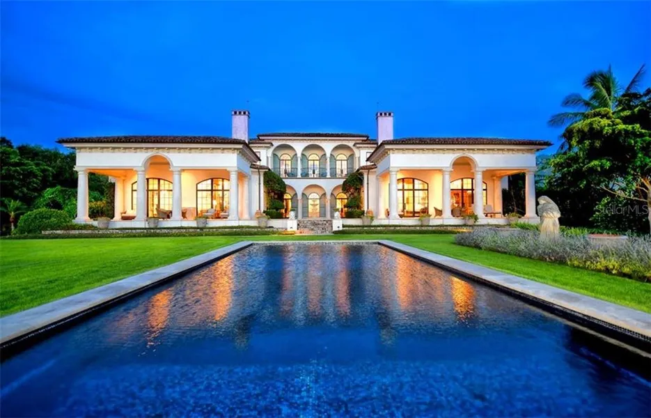 Rarely has such an unprecedented opportunity come available for the most discerning buyer in search of a private waterfront gated estate in Harbor Acres, a premier established neighborhood set on Sarasota's Bay. An architectural masterpiece set on 1.5 acres with 230 feet of bay front is designed with refinement and unmatched authentic style, born from the collaboration of renowned architect-designer Thorning Little and leading luxury home builder Bruce Saba. This estate was curated for comfortable entertaining, combining the magnificent water landscape with the warmth of a country chateau. Restored front doors from the Belgium Embassy set the stage for the exquisiteness beyond, from the imported hand-carved cabinetry and interior doors, heated stone flooring and 14' ceiling heights to the custom ceiling treatments, hand-plastered interior walls, antique chandeliers and painstaking crafts...