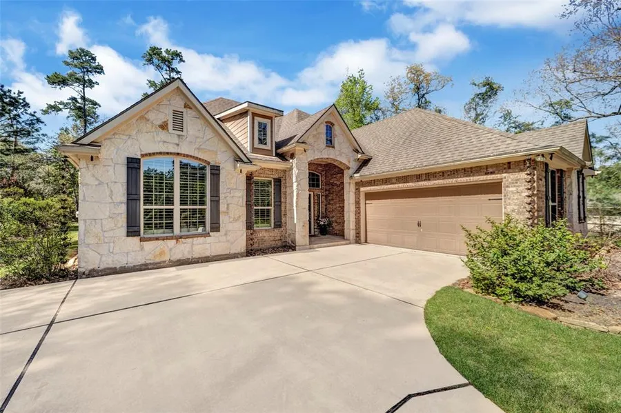 Beautiful one story, 4 bed/3 bath home on a 1.45-acre wooded lot in the acreage community of Ridgelake Shores. Smart Home panel controls security cameras, lights, switches, & HVAC. This home features wood and tile flooring throughout, no carpet in the entire home. Family room is open to the kitchen and breakfast area with a wall of windows and features a floor to ceiling stone fireplace. The spacious primary bedroom is complete with an ensuite bath that includes a separate shower, jetted tub, and walk in closet. Backyard includes covered back porch, pergola & over 1,200 sq. feet of long-lasting composite decking. Low tax rate & close proximity to dining/shopping on Lake Conroe and The Woodlands.