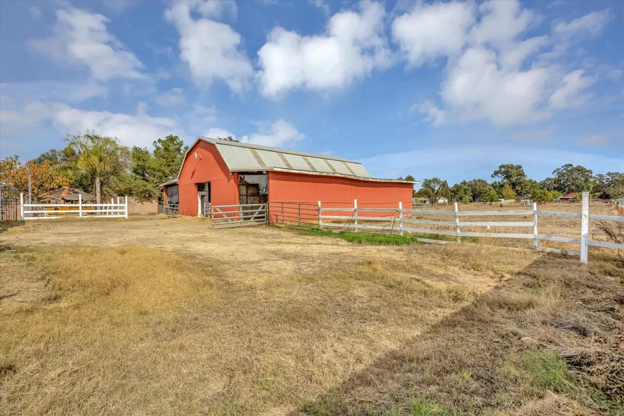Sweet Country Home with Room to Grow! Got Horses? A 2-story, 10-stall BARN with a bonus 1/2Bath sits on the property, complete with a pasture, chicken coop, and room for all your toys! Sit on your back Deck and enjoy the beautiful view and fresh air. Drive in through your electronic wrought iron gate to your charming brick front house with tile roof and white picket rail. This 2bed/2bath home also has a cute Bonus Room with central heat and air above the extra large 4-Garage...great for kids! The large Kitchen has granite countertops, moveable island, and dining bar. Throughout the home youll find laminate, tile, and marble flooring. The Living Room features a cozy brick wood-burning Fireplace. The Hall Bath has newer flooring, sink and paint. The Primary Bath has double sinks. The inside Laundry Room features a large pantry area too! The HVAC is just 1 year old! Location in the country, but quick access to city amenities! Fabulous Elk Grove School District.
