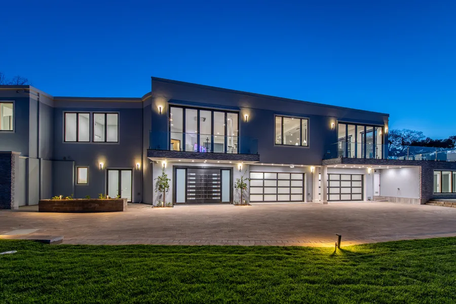 New Modern estate on nearly 1.5 acres located on a non-through street, just-completed on 12/21. Luxurious style with sweeping Bay views all the way to San Francisco. Integrated Voice and App-controlled estate, with over 2000 square foot open space with curtain doors to connect inside/outside for large gatherings. Features 2-master suites, plus 4 bedrooms each with en suite baths, plus 2 half baths, attached 4-car garage, 2 EV stations and bonus/shop room. Features: Dramatic LED and fiber optic lighting, as well as extensive layouts of GLACIER WHITE QUARTZITE. Floor level features: foyer, theatre room, half-bath, office, wine cellar, 3-bedroom suite, space for spa/fitness center or secondary kitchen, laundry room. Main-level features: Open concept great room, kitchen, bar, nook, guest-bath, Master Bedroom suite, plus 2-bedroom suites. Infinity-edge pool with waterfall, beautiful marble an...