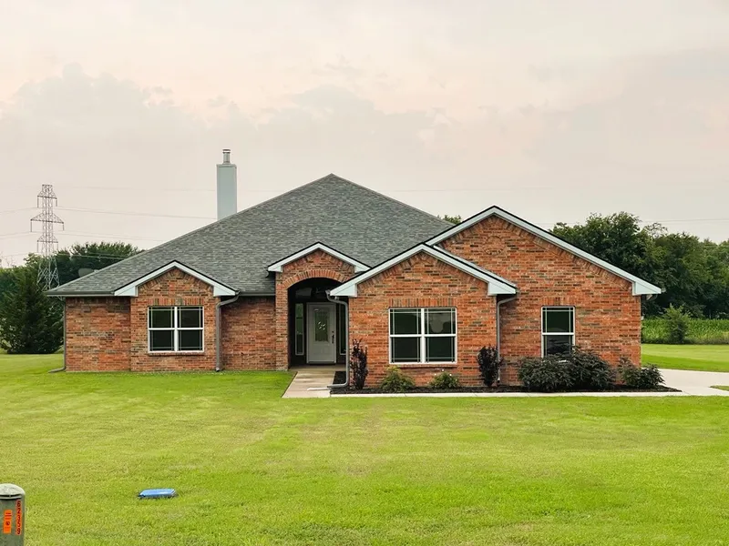 Fantastic custom built 4 bedroom, 2.5 bath, 3 car garage home located on cul-de-sac. Enjoy atmosphere of small town with convenient location to Sherman and Denison. House features open floor plan with large den and cozy wood burning stove. The dream kitchen offers custom cabinets, double ovens, and large walk-in pantry. The primary bedroom and bath are handicap accessible. Great floor plan with primary bedroom, bath, and utility room near kitchen and living area. Covered patio overlooks yard that would accommodate a pool and garden.