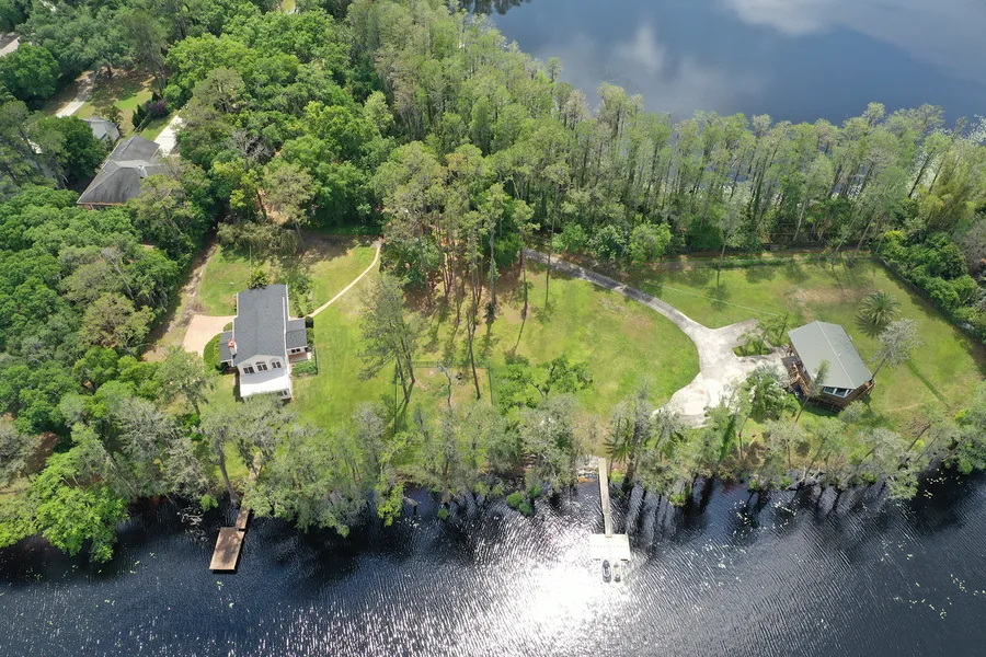Two amazing properties on the south end of Lake Pretty are being offered together. Winding driveways through gorgeous oak trees and tropical foliage welcome you to these breathtaking lakefront properties occupying two-and-a-half acres directly on the south end of coveted Lake Pretty. With almost 550 linear feet and presenting panoramic views of one of Odessa's most scenic lakes, this is a once-in-a-lifetime opportunity for anyone looking to build an exceptional residence or family compound. The properties currently have two homes on them and offer a long view down the center of the lake. The first home located at 16161 Mcarn has 2,785 living square feet with three bedrooms and two-and-a-half baths. This home was mostly rebuilt in the 1980s and has a newer roof, but still needs major renovations or it could be torn down to make room for a new home. It currently offers spectacular wide water views from most of the living areas and offers a spacious great room with a fireplace and charming terracotta tile floors. The kitchen features granite countertops, wood cabinets and stainless steel appliances. Upstairs you will find the office (or small third bedroom) and the master suite with a balcony offering Palladium-topped French doors and one of the best lake views in the area. The outdoor features include a brick and import-inlaid tile patio, wood dock, extensive landscaping, lovely brick walkways and a separate covered carport storage building. The second home at 16165 Mcarn is a 990-square-foot updated cabin that could be a charming guest or in-law house. A remodel is not fully completed but includes a new air conditioner, new water treatment system, new hot water heater, new plumbing, electrical and drain field. The interior is stylishly updated with beautiful finishes such as wood cabinets, quartz countertops, new windows and stainless steel Bosch appliances. Finish with your new flooring and your own unique touches to make a weekend retreat everyone will love or live there while building your dream home. Located adjacent to a new gated community of $1.5 Million-plus homes, this is the perfect location to build your new dream home with boating, skiing or fishing and no deed restrictions. Lake Pretty is one of Odessa's most popular lakes with its proximity to shopping, restaurants and the expressway but still offers a quaint Old-Florida feel in a truly picturesque setting you will love.