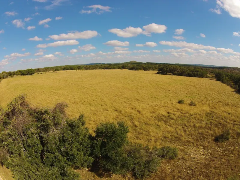 TERRAIN: The property has a great mixture of flat open fields covered in grass, creek bottoms with large trees and rolling hills with long distance hill country views. The elevations ranges from 1,160 to 915 feet above sea level, with hill views across the Blanco River.