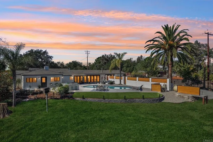 Modern California Farmhouse thoughtfully reimagined to reflect relaxed sun washed living w subtle Spanish influence throughout. Designed to feel elevated yet welcoming the home blends clean intentional lines natural materials black accents and layered textures to create warmth balance and an effortless indoor outdoor lifestyle. Do not let the year built mislead you this is a complete top to bottom remodel combining the craftsmanship and character of a bygone era w modern conveniences buyers expect. At the heart of the home is a spacious chefs kitchen featuring brand new stainless KitchenAid appliances incl a 36in propane gas range w exterior vented hood ideal for everyday living and entertaining. The kitchen opens to expansive layered living and dining areas capturing sweeping inland views north toward Sleeping Indian and east toward Mount Palomar offering beautiful sunrise and sunset vi...