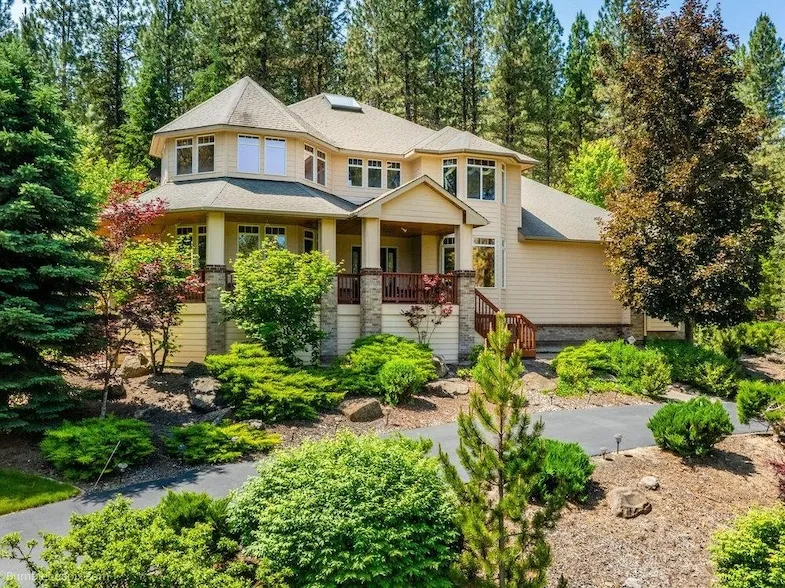 Discover the grandeur of this Spectacular Home Show Award Winner in the peaceful Ridge at Hangman. Set on nearly 1.5 acres of scenic beauty, this exquisite estate offers a true sanctuary of comfort and style. Step inside to a warm, inviting entry where rich hardwood floors flow into the kitchen and breakfast nook. The living and dining rooms feature cozy fireplaces, perfect for gatherings or quiet evenings. The expansive kitchen boasts a central island and generous eat-in space ideal for daily living or entertaining. The lower level includes a media room and workout space, creating a private retreat for relaxation and fun. The luxurious primary suite is a haven with a spa-inspired bath, walk-in shower, soaking tub, and spacious closet. A highly efficient geothermal heating and cooling system ensures year-round comfort. Outside, enjoy stunning grounds with water features, multiple patios, and a charming gas fireplace perfect for all-season enjoyment.