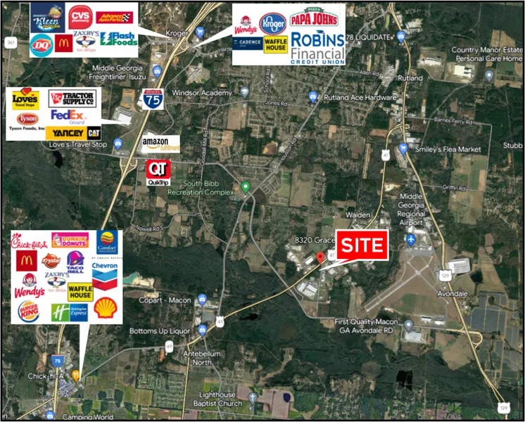 Lot #1: 1.48 Acres - $125,000 - Corner lot - 524’ frontage on Industrial Boulevard (Hwy. 49) - 352’ frontage on Grace Road Lot #2: SOLD Lot #3: 1.27 Acres - $95,000 - 160’ frontage on Grace Road - 362’ depth All public utilities available City water and sewage supplied by Macon Water Authority Water: 12” across Grace road and possible access easement to 12” along Industrial Highway right-of-way Sewer: 8” sanitary sewer on Grace Road Natural gas service is available from various providers Electrical supplied by Georgia Power Zoned M-1, Light Industrial