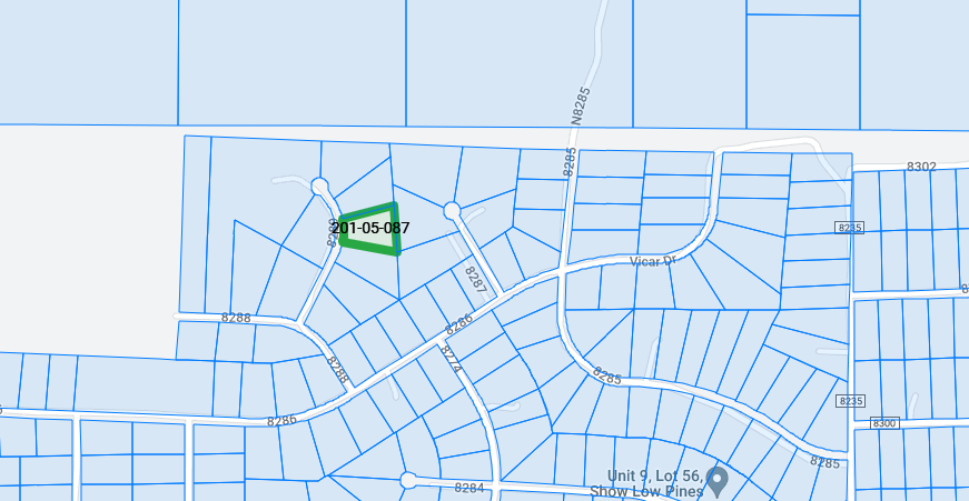 Legal Description: SHOW LOW Pines Unit 9 Lot: 87 Section: 30 Township: 12N Range: 24E