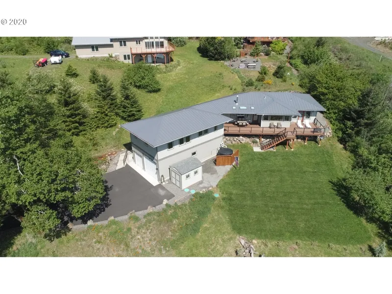 Enjoy COLUMBIA RIVER VIEWS from this gorgeous, custom handcrafted home on 1.48 acres. 3 Bedrooms/3 Bathrooms including SEPARATE LIVING QUARTERS with its own kitchen, bath, laundry, living room and separate entry. Vaulted Great Room ceiling, quartz counter tops, SS appliances, built-ins, office, Lopi wood stove and NW hardwood finishes. 12'W X 10'H garage door to park your toys. Rain collection system for irrigation. Huge composite deck & life-time metal roof. Multi-camera security system.
