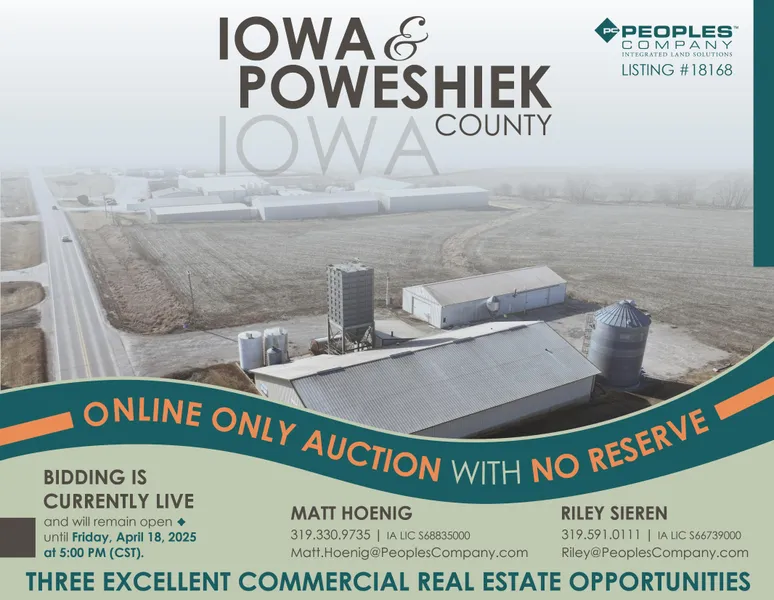 Peoples Company is pleased to offer an excellent commercial real estate opportunity in Victor, Iowa, featuring three distinct tracts with versatile potential. Located in a prime area with convenient access to Interstate 80, these properties provide a range of investment possibilities, from industrial and warehouse space to retail and office opportunities. Tract 1 boasts a well-equipped industrial facility with multiple buildings and ample storage with proximity to Interstate 80, while Tract 2 offers a centrally located commercial building ideal for retail or office use. Tract 3 features a spacious, heated 4,900-square-foot building on a highly visible corner lot, perfect for a variety of business ventures. Whether you're looking to expand an existing operation or establish a new presence in a thriving community, these properties present a unique chance to invest in prime commercial real estate.