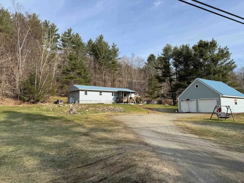 3 bedroom 2 bath, double wide on 1.49 acres in Shaftsbury. Offering good location, large yard, and convenient travel to town. Living room with new pellet stove, kitchen with modern appliances including newer stove and dining area. Outside a 2 car detached garage, storage sheds and front and rear porches. New carpet.