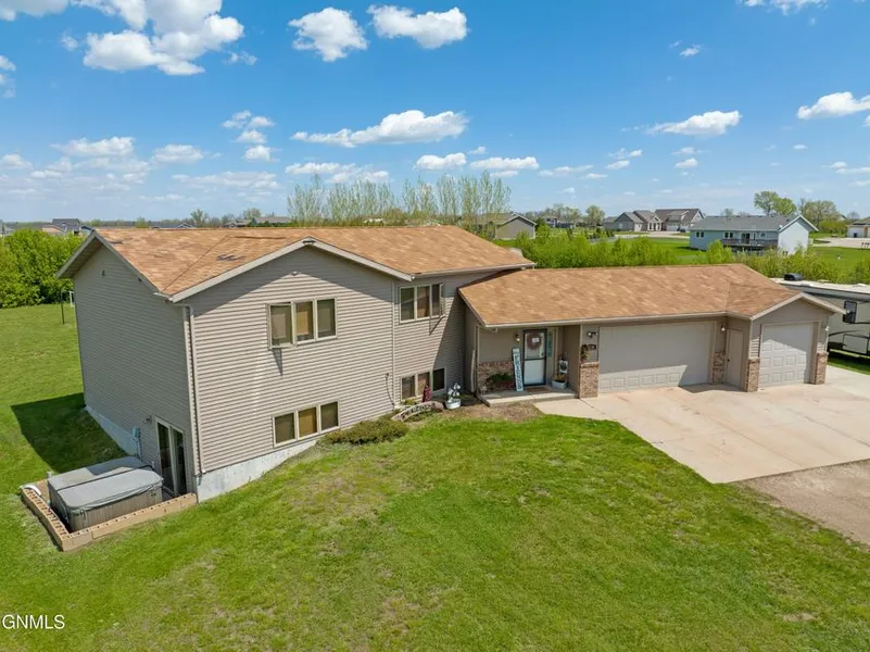 Come and see this great south-facing home just minutes from Bismarck surrounded by chokecherry, pear & other trees! This wonderful one-owner home was custom built in 2007. The open floor plan is topped with vaulted ceilings and filled with natural light. The large kitchen offers great works pace, center island, pantry and new stainless steel appliances in 2020! The dining room offers access to the back deck overlooking the yard and the large living room with new carpet in 2021 has room for all of your furniture. The master suite has a large walk-in closet and private 3/4 master bath. There is also a large second bedroom, full guest bath & 2 linen closets on the main floor. Step downstairs and you will find a huge family room with walk-out access to the patio and hot tub (hot tub is included!), 2 additional large bedrooms & another full guest bath! There is also a nice laundry room plus mechanical room with great storage, energy efficient furnace with plenum heat & NEW water heater in 2020! As a bonus - there is a second entry to the garage accessible from the basement! The 3-stall garage is mostly insulated and ready to finish and comes complete with a workbench! If you need more parking you will appreciate the concrete parking pad adjacent to the garage! The beautiful private yard has approximately 120 chokecherry trees & 120 pear trees that are great for making jelly or wine or whatever you desire! Don't worry about cluttering up your garage with yard tools and gear - there is also a storage shed perfect for these items! Sellers are having new shingles put on the house prior to closing with acceptable Offer. Call a REALTOR to schedule a private showing today!