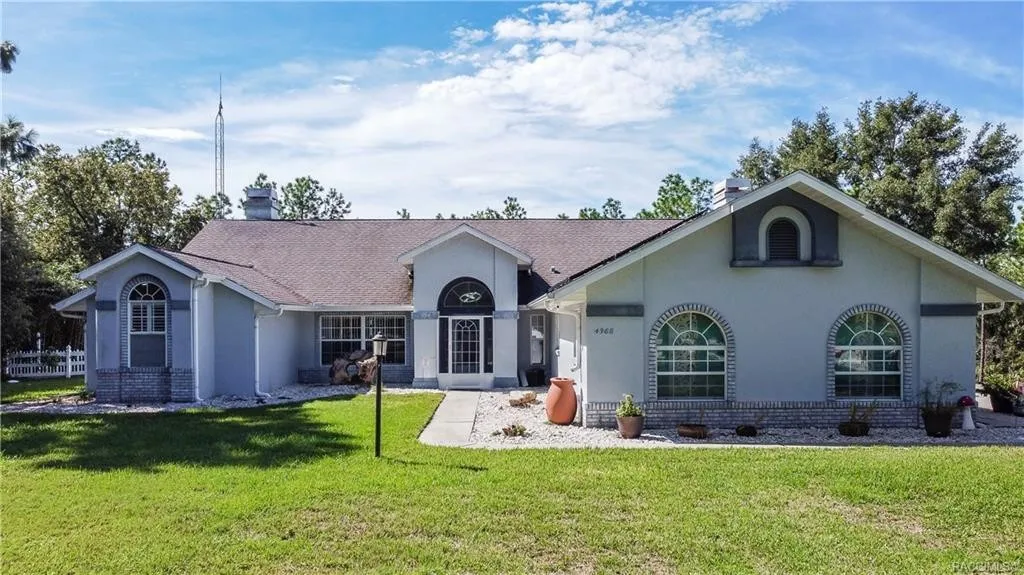 How would you like $30.00 power bills? This stylish 4 (could be 5) bedroom, 2 full and 2 half baths on 1.49 acres in Pine Ridge with a screen in pool can be yours! 65 solar panels- an incredible amount of power- seller to pay off $57,000 loan balance for this money saving bonus. 2 gas fireplaces (250 gallon tank on site.) Huge 20 x 16 eat-in kitchen with deluxe appliances and bamboo flooring. There is a bonus studio (air-conditioned) with half bath and shampoo bowl that could be a bedroom, office, or studio. Home has a formal living, dining, and a huge great room in the living square feet of 2963. There is also a shed with a metal roof. A must see! See extra feature in attachments.