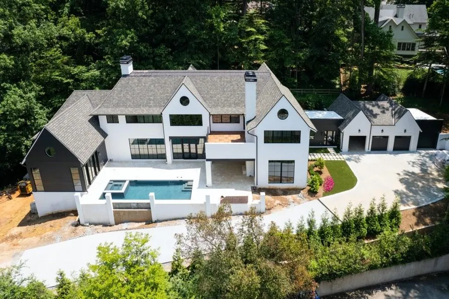 A carefully curated design team that includes builder White Oak Fine Homes, architects Harrison Design and interior design firm Bicoastal By Design have just completed another luxurious and transitional residence located in Buckhead's Chastain Park. As soon as you step inside, you'll be greeted with a stunning two-story open foyer, 12-foot ceilings and wide plank hardwood flooring, all finished to the highest standards of quality and design. The location of the house is highly sought-after and elevated on the property. Situated on 1.49 acres right on Chastain Park, opposite the golf course and walking path. The house is perfectly sited up a long gated drive and set far back enough to ensure privacy. The backyard is landscaped beautifully with boulder retaining walls and sod. More space for a firepit if desired. The kitchen is spectacular, boasting double marble islands by Walker Zanger, seating, cabinets by Bell Cabinetry and a Miele appliance package. For those who love to entertain, there is also a scullery adjacent to the kitchen, perfect for additional food preparation, breakfast items, walk-in pantry storage, and catering. Other features of the home include walls of glass that overlook the pool, two large open stairwells, a side entrance with mud room, two laundry centers and a 4-car garage with ample motor court parking. The 4th bay could easily be set up as viewing garage or for a golf cart. The open living spaces have walls of Windsor glass that open to the entertainment patio with fireplace, outdoor grill and infinity pool/spa on one side, and the turf garden on the other side. The primary bedroom suite and bath is a private sanctuary done in Venetian plaster, with a barrel ceiling and a jaw-dropping bathroom featuring heated flooring, a double-sized shower, two water closets, and a large dressing room. Take the second stairwell upstairs to find four bedroom suites, a living room, laundry, and an outdoor patio with views of the park. The terrace level features an additional bedroom or gym with a spa bath. The main room on the terrace level is perfect for a bar and massive theater. The house has plenty of storage. This turnkey new construction luxury residence in Buckhead is now complete. The pool is in and the house is done! Don't miss your chance to own this exceptional and stunning home!