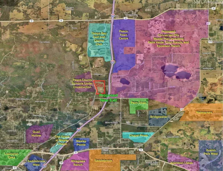 LOCATION DESCRIPTION The parcel is ideally located on Old Pasco Road, just north of Overpass Road (budgeted and approved for a new exit from I-75) in Wesley Chapel, FL. This parcel is west of I-75, between SR 54 and SR 52, north of The Groves shopping center.