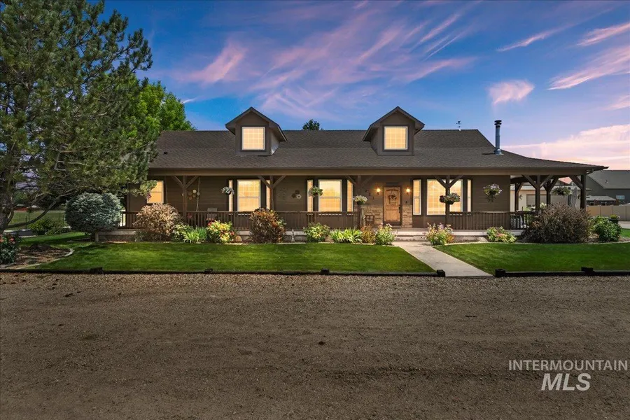 Mini farm close to town. Beautiful home is tucked away with inviting porches just waiting for you. The spacious floor plan features lots of natural wood and has something for everyone. Large kitchen with walk in pantry & breakfast bar. Wood stove in the great room can heat the house. Primary suite has large walk in shower, separate tub, & plenty of closet space. All bedrooms are good sized. Bonus room & bathroom upstairs could be a 4th bedroom. All animals welcome. Pasture is fenced and there are corrals. Outbuildings include a large shop, small shop, barns and 3 covered animal shelters. Plant your own garden in the garden boxes and store all your tools in the tool shed. Home lot has 2 residential wells with Nampa/Meridian irrigation rights. Aprox 1.5 acres will be surveyed prior to close for exact acreage. Within blocks of 2 charter schools.