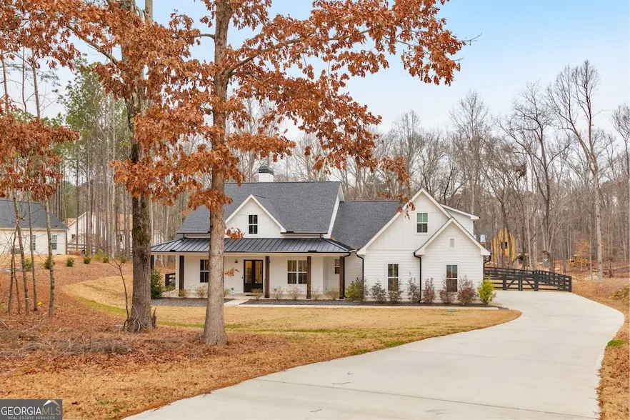 Looking for a home that checks all of your boxes? Look no further! Welcome to this stunning 2023-built modern farmhouse, offering 4 bedrooms and 3 baths on a picturesque 1.5 acre lot in a prime Woodstock location. From the moment you step onto the charming rocking chair front porch, you'll feel right at home. Inside, the open-concept design is filled with natural light, showcasing a bright and airy living space that's perfect for both everyday living and entertaining. The chef's kitchen is a true showpiece with an expansive island, quartz countertops, stainless steel appliances, a farmhouse sink, and a large walk-in pantry. An office sits just off the main living area, providing a quiet space to work from home. The main-level primary suite is a luxurious retreat with a spa-like bath boasting a double shower and dual vanities. The oversized walk-in closet is a dream and connects directly ...
