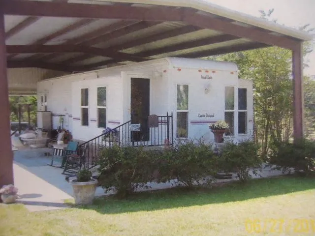 Custom built 2000 Park Model, 45' long with four slide outs, situated on 1.50 acres+-. This is a unique set up with the Park Model featuring one bedroom with one bath, living room, dining room and kitchen combo. Appliances include electric stove and microwave. Super nice with a covered patio and two car carport. Park Model sits on a concrete slab that is approximately 38 x 50. Flooring is laminate, 9' ceilings, two central air units, central heat is propane. Bonus of a 38 x 40 corrugated metal building which is fully insulated with one bathroom which is plumbed for a shower. This is large enough to house a motor home. This building has a 50 and 30 amp plug for the motor home and has a sewage hook up as well. Second bonus is another 12 x 16 insulated vinyl building which is used for storage only. Lots of fruit trees - blueberries, fig, peach trees, apple trees and muscadines. This could b...