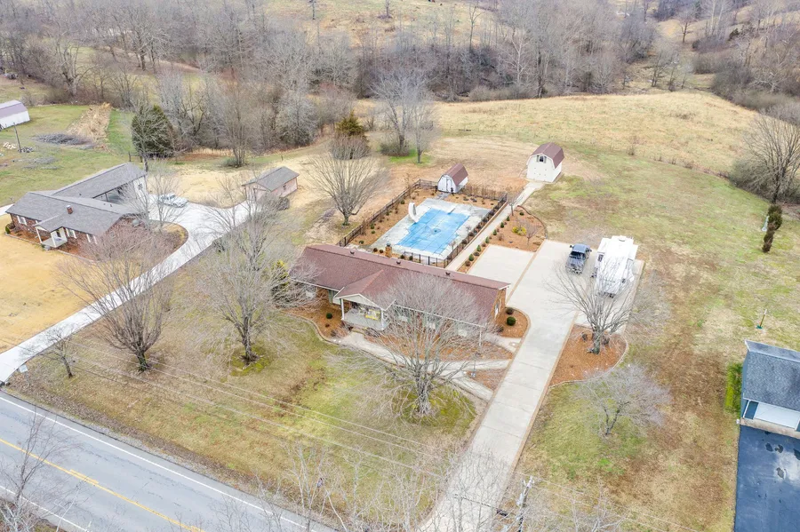 Outdoor Living Perfection! An Elegant All Brick home where Warmth and Gracious Spaces Abound. This semi private 1.5 acre lot has a Heated Inground Pool, Lush Landscaping, Custom Designed Concrete, 2 outdoor Buildings for all your storage needs. Covered Front Porch welcomes you. Step inside to a Family Rm, Formal Dining Rm. The kitchen has Granite counters and ample cabinet space, Eat in Kitchen. This 4 Bdrm/ 2 Ba home has been well cared for! Don't let it slip away. Showings by Apt only