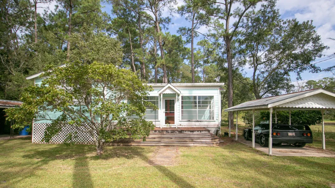 Cottage style home situated on 1.5 acres with direct access to Ft. Bayou River. So many key factors with this property! Waterfront with private dock to enjoy your evenings fishing, good bulkhead. Water is deep enough for shrimp boats and only a few minutes by boat to the Gulf. Not located in city limit; however, very convenient to many amenities. Less than one mile from I10. Decorative, brick accented pond. Plenty of privacy - woods on one side and fenced yard on the other side that would be easy to plant trees for even more privacy. Free flowing well with great water! Plenty of room in the event a new build is desired. Call today to schedule your showing! You don't want to miss this one!!